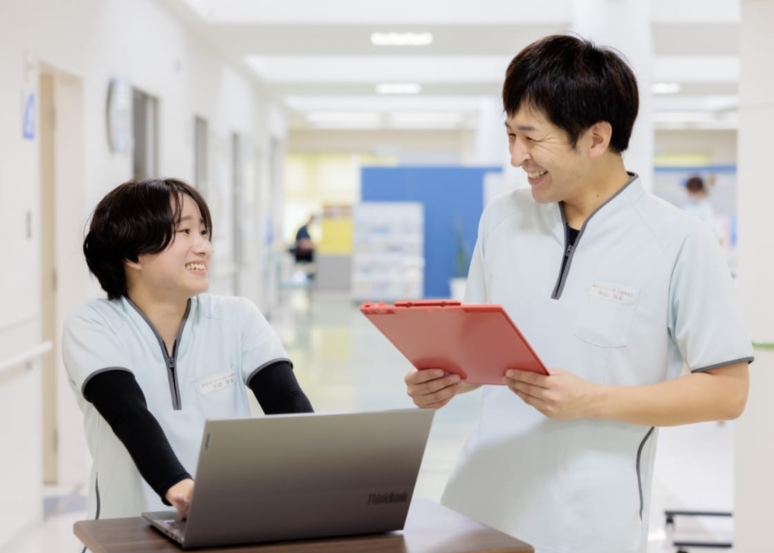 「スタッフの声」では、専門資格があるスタッフから皆様へのメッセージも掲載しています。共に学び、共に成長し、やりがいをもって、よりよい医療・看護・介護の提供を目指す仲間を求めています。