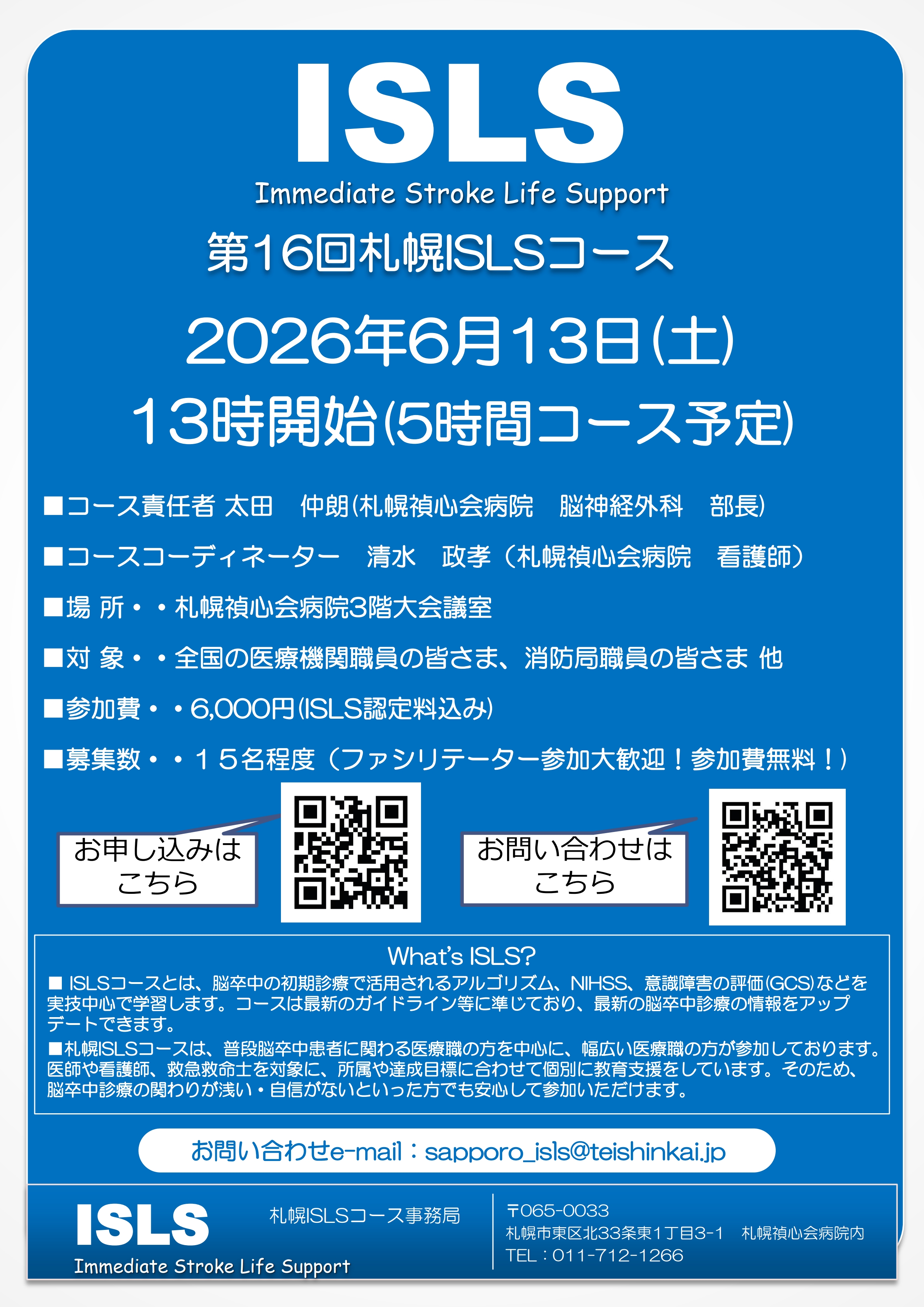 コースの内容や参加資格などの詳細についてはISLSのホームページをご参照ください。